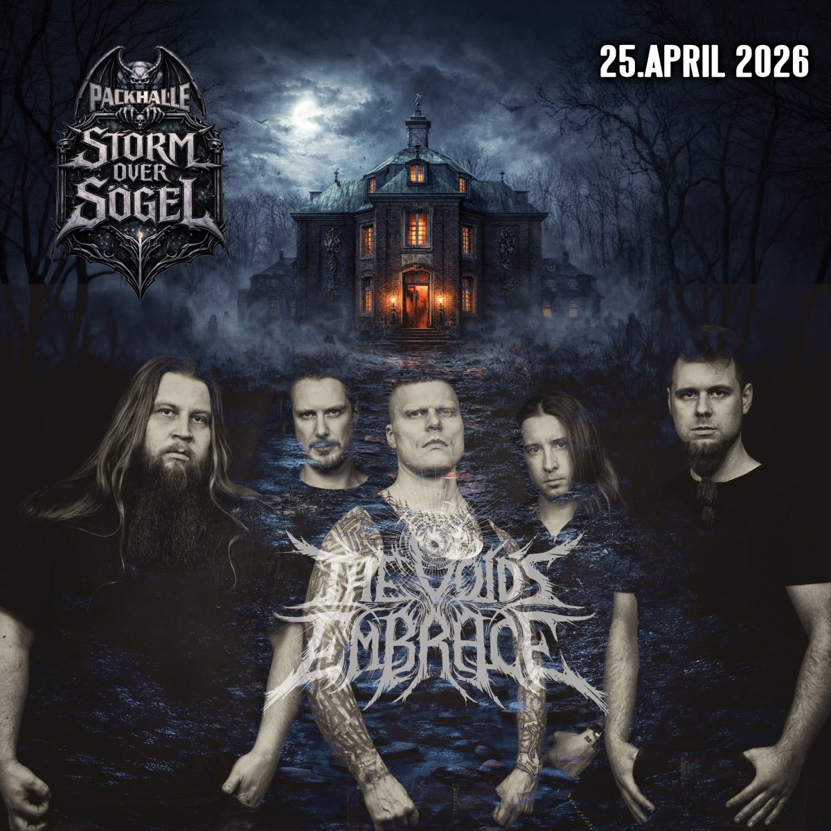 Mit dabei sind The Void’s Embrace aus Gelsenkirchen. Die fünfköpfige Formation entstand aus ehemaligen Mitgliedern der deutschen MDM-Szene (unter anderem Axolotl und Decaptacon) und steht für „Blackened Melodic Death Metal“. Geprägt von den Einflüssen der schwedischen Death-Metal-Szene der 90er Jahre, verbindet die Band raue Kälte mit eingängigen Melodien. Was einst als Nebenprojekt von Gitarrist Dennis Kree begann, entwickelte sich mit Sänger Andreas Gerhard und Schlagzeuger Holger Gebhard zu einer festen und ambitionierten Band.